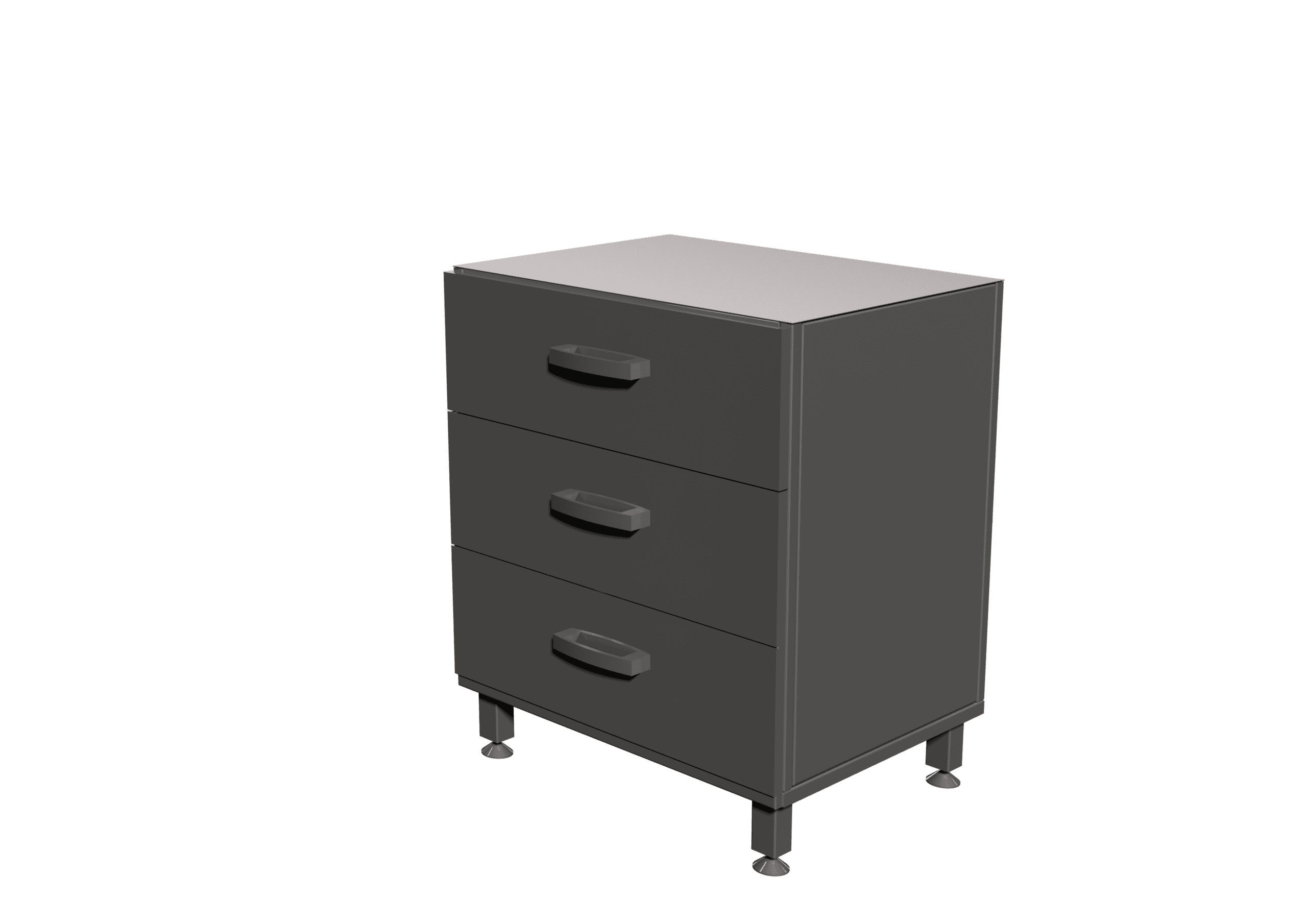 Lower cabinets are typically placed under the C, D frames, under the table top. Their simple construction means that the various designs can meet all kinds of laboratory needs. Their height is optimal, specifically designed for seated work. The drawers slide on roller rails for easy handling. They are characterised by an aesthetic, ergonomic design. The painted surface is coated with antistatic paint in RAL colours according to the customer’s requirements.