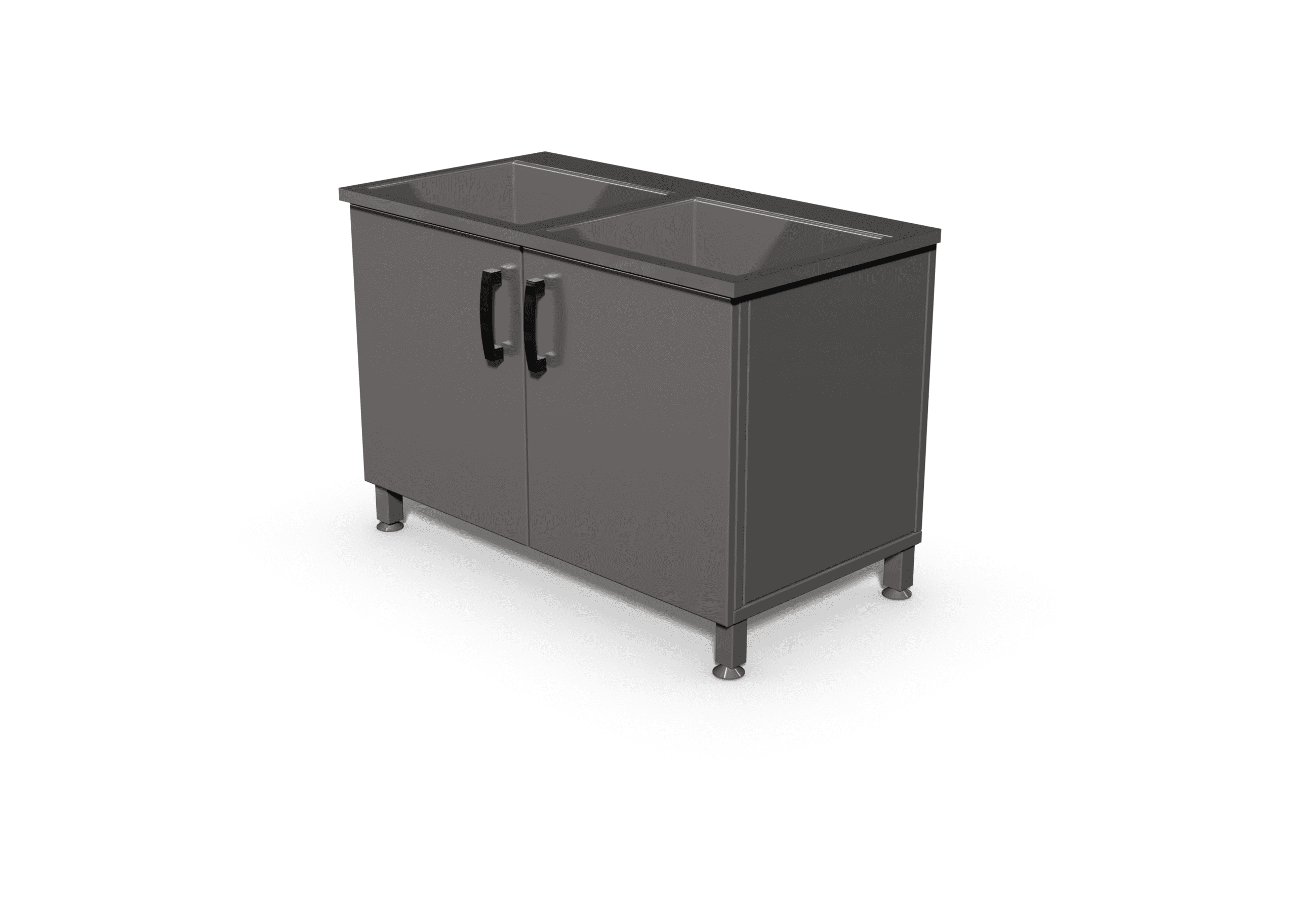 The design of the base cabinets with sinks always takes into account the customer’s needs. Therefore, when ordering, the size, material, design and possibly the manufacturer of the sink required should be specified. The surface of the cabinet is of rimless design. The painted surface is coated with antistatic paint in RAL colours according to the customer’s requirements.