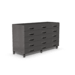 Az alsó szekrényeket jellemzően a C, D vázak alá lehet behelyezni, az asztallap alá. Egyszerű szerkezetük révén a különböző kialakítások mindenféle laboratóriumi igényt ki tudnak elégíteni. A magassági méretük optimális, kifejezetten az ülő munkákhoz van tervezve. A fiókok görgős síneken csúsznak, ami könnyű kezelhetőséget biztosít. Esztétikus, ergonómikus kialakítás jellemzi őket. A festett felület antisztatikus festékkel bevonva RAL színskála alapján a megrendelő igénye szerint.