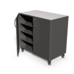 Az alsó szekrényeket jellemzően a C, D vázak alá lehet behelyezni, az asztallap alá. Egyszerű szerkezetük révén a különböző kialakítások mindenféle laboratóriumi igényt ki tudnak elégíteni. A magassági méretük optimális, kifejezetten az ülő munkákhoz van tervezve. Az ajtók mögötti polcok áthelyezhetők. Esztétikus, ergonómikus kialakítás jellemzi őket. A festett felület antisztatikus festékkel bevonva RAL színskála alapján a megrendelő igénye szerint.