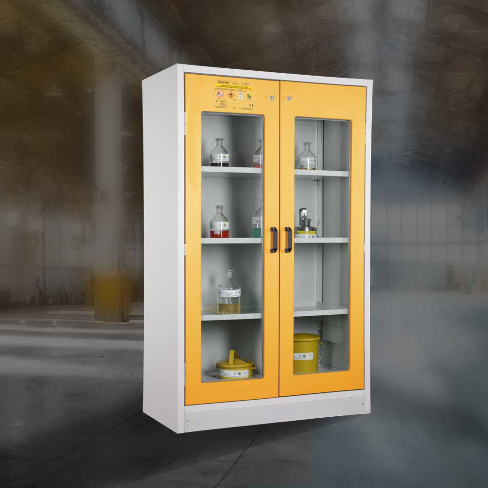 Veszélyes anyagok tárolására szolgáló szekrények (30-as típus) tűzgátló üvegajtókkal – szélesség 1200 mm